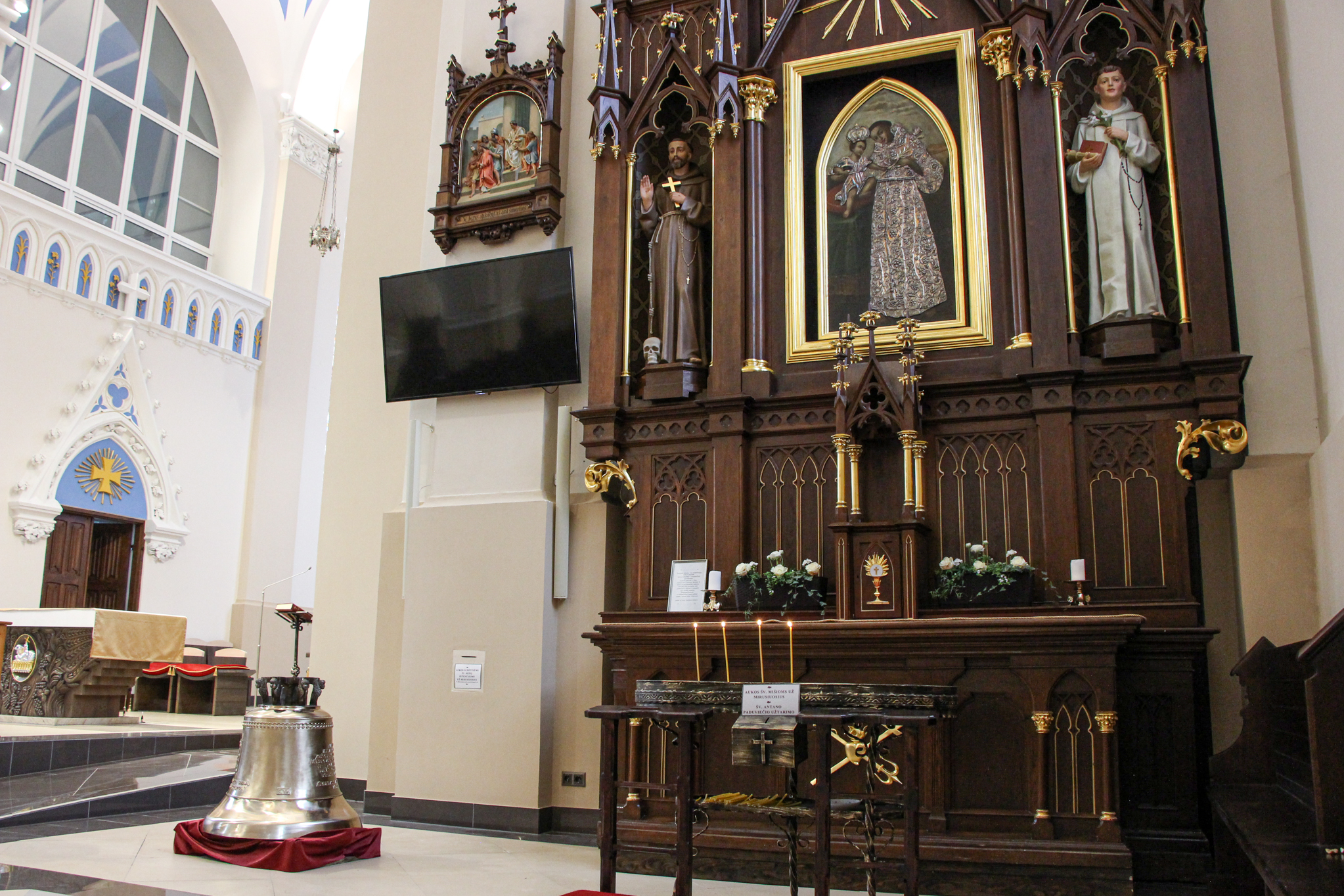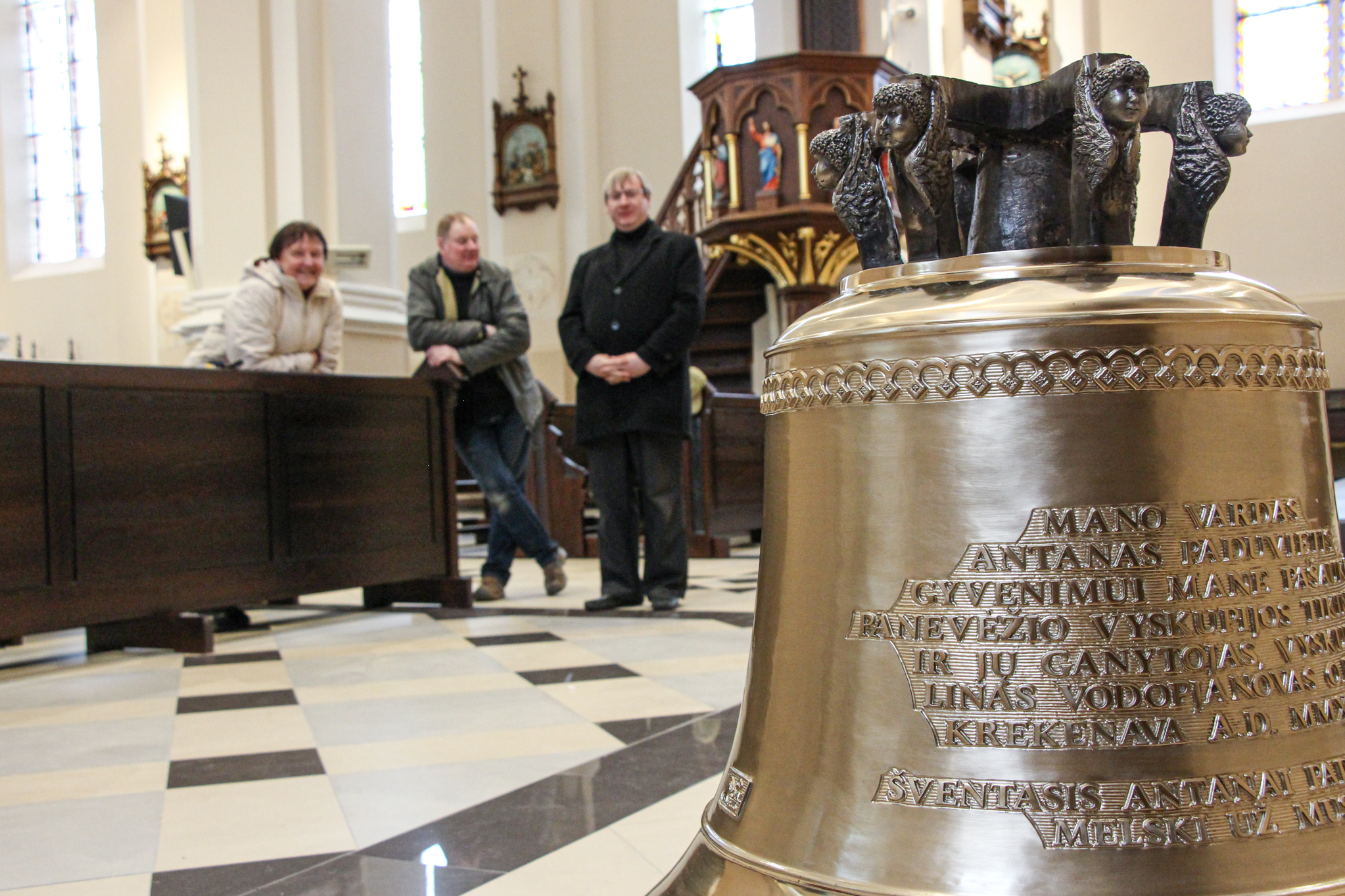 Nuotraukose užfiksuotas naujo - Krekenavai ypatingo globėjo Šv. Antano Paduviečio varpo atvykimas, pašventinimas bei kėlimas į bokštą.