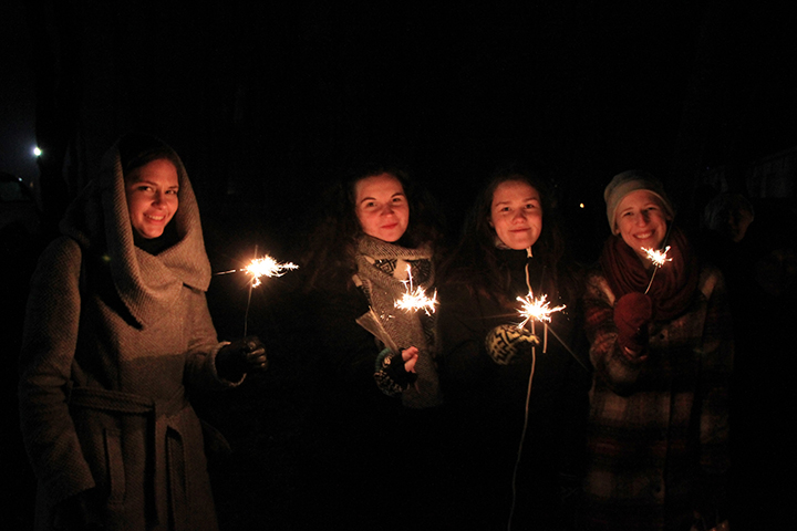 Gruodžio 31 d., šeštadienį, 23 val. tradiciškai susirinkome į šv. Mišias padėkoti Dievui už senuosius metus, vėliau skubėjome prie naujametinio laužo ir į parapijos namų salę, kur pastoracinė ir ekonominė tarybos bei „Raskila“ pakvietė visus į smagią ir smarkią šventę iki paryčių.